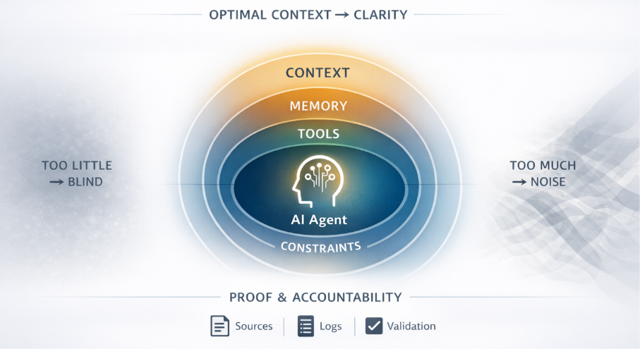 Enterprise systems shift from isolated applications to orchestrated capabilities, where effectiveness relies on carefully calibrated context. The objective is not to accumulate information, but to operate within constraints: insufficient context limits understanding, while excess creates noise. What matters is not completeness, but selecting what is truly relevant.